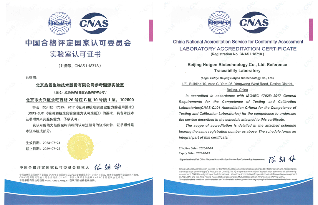 熱景生物參考溯源實驗室正式通過中國合格評定國家認可委員會(CNAS)ISO17025和ISO15195認可!