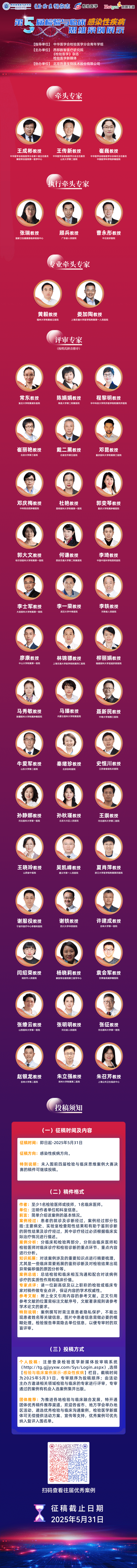 更多活動流程及投稿信息見官方通知:火熱征稿中 | 第5屆檢驗(yàn)與臨床(感染性疾?。┧季S案例展示專家評審團(tuán)公布