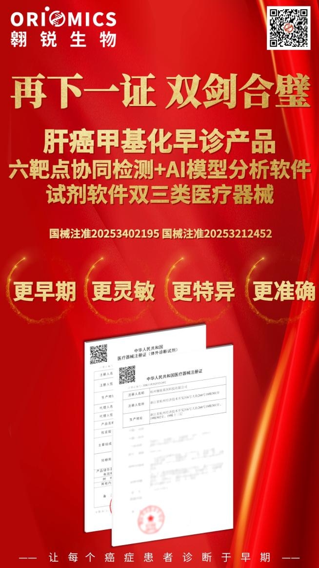 12月1日,熱景生物重要參股公司翱銳生物研發(fā)的“TSPYL5、RASSF1A、DAB2IP、OTX1、PTPN18、HIST1H3G基因甲基化AI模型分析軟件”成功獲得中國國家藥品監(jiān)督管理局(NMPA)三類醫(yī)療器械注冊證。這是繼2025年10月“利為平?——肝癌甲基化六靶點(diǎn)協(xié)同檢測試劑盒獲批后,翱銳生物在30天內(nèi)拿下的第二張“三類證”。自此,翱銳生物已形成“檢測試劑+AI分析軟件”雙Ⅲ類證的完整產(chǎn)品組合,標(biāo)志著公司在肝癌早診早篩領(lǐng)域的產(chǎn)品布局進(jìn)入“精準(zhǔn)診斷”與“智能分析”深度融合的全新階段。