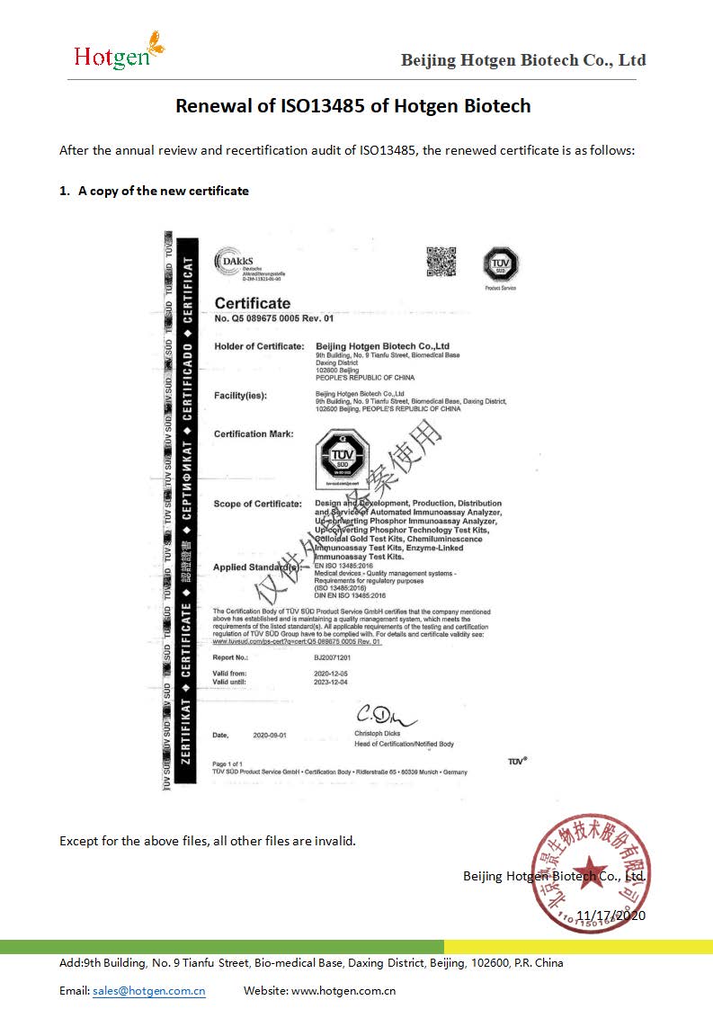 Last Article:CE Certification Statement for Novel Coronavirus 2019-nCoV Antigen Test (Colloidal Gold)