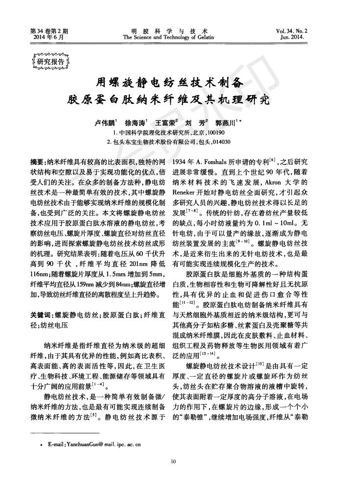 用螺旋靜電紡絲技術(shù)制備膠原蛋白肽納米纖維及其機理研究