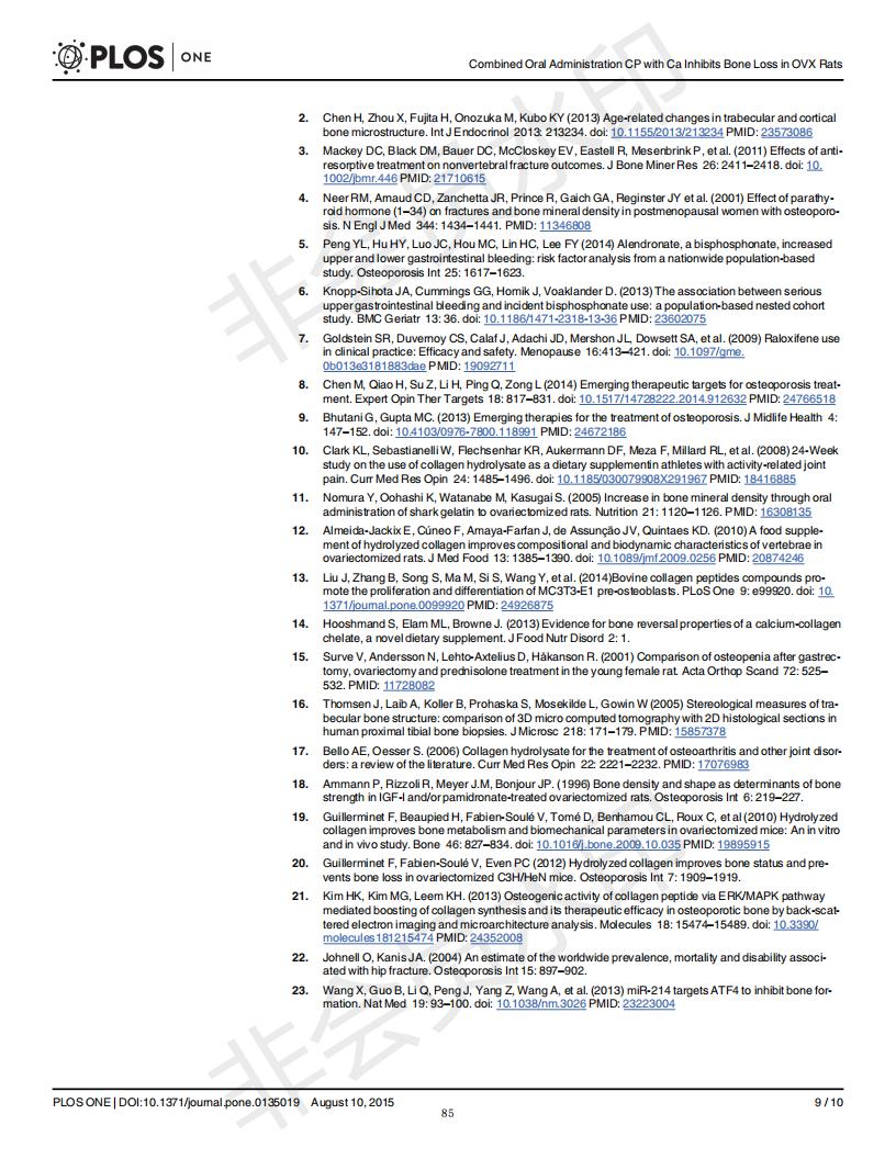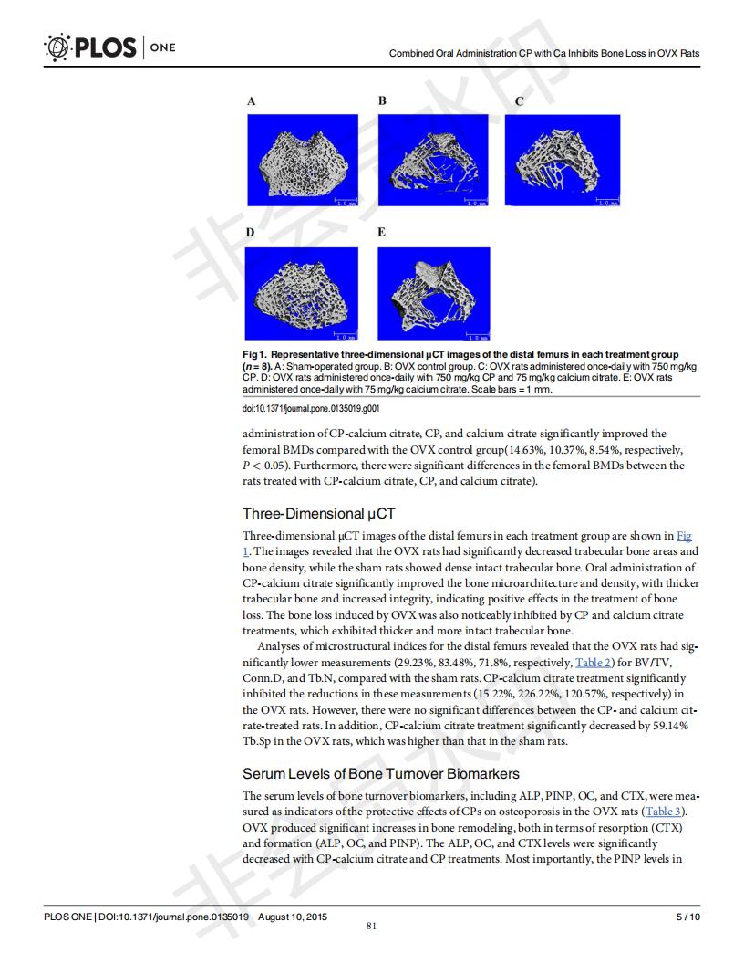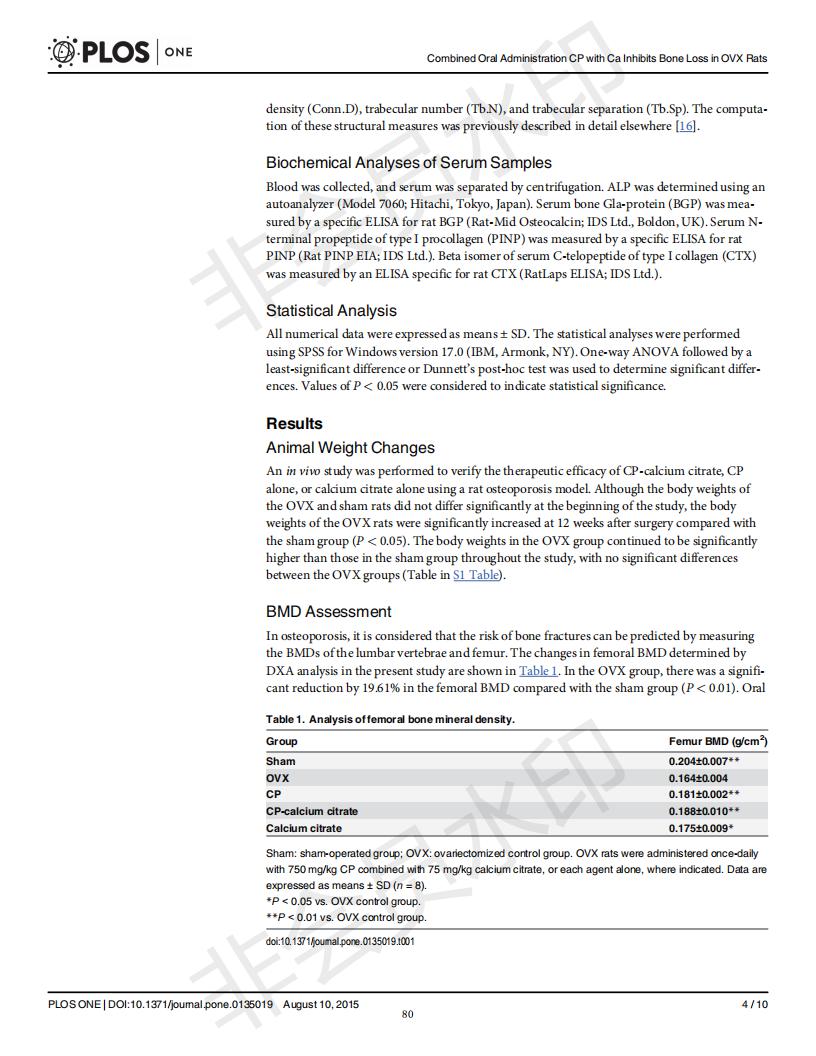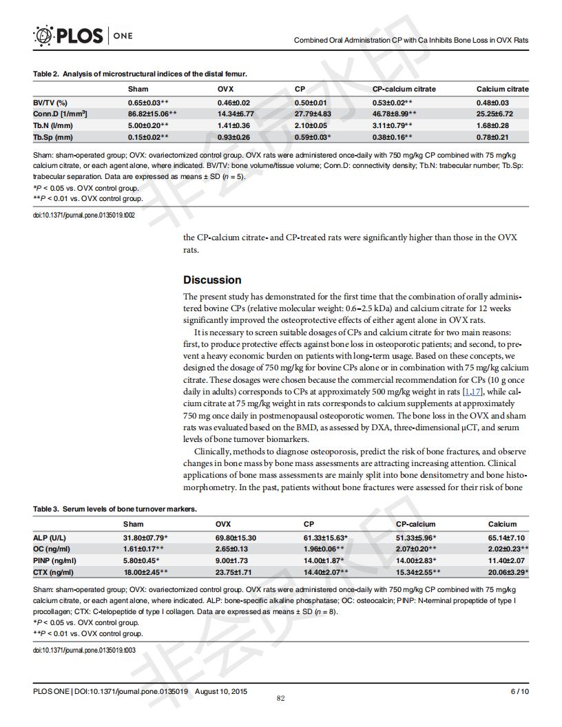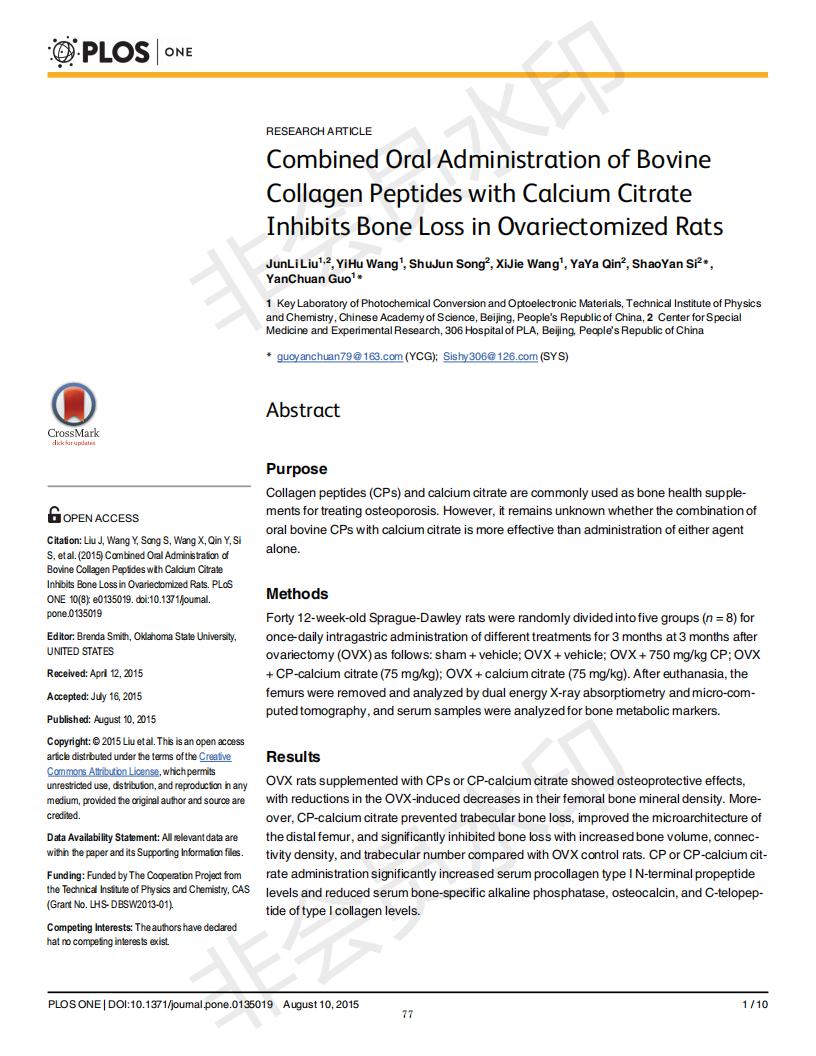 口服骨膠原肽于檸檬酸鈣抑制去卵巢大鼠骨丟失