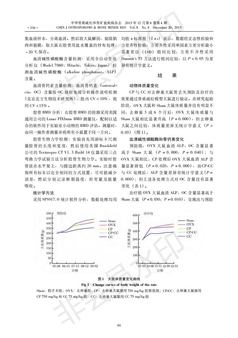 骨膠原肽與檸檬酸鈣對(duì)去卵巢大鼠骨丟失的預(yù)防及治療效果