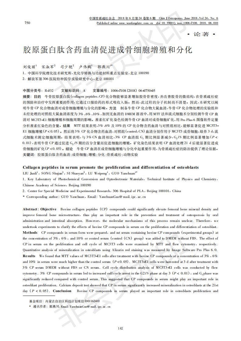 膠原蛋白肽含藥血清促進(jìn)成骨細(xì)胞增殖和分化