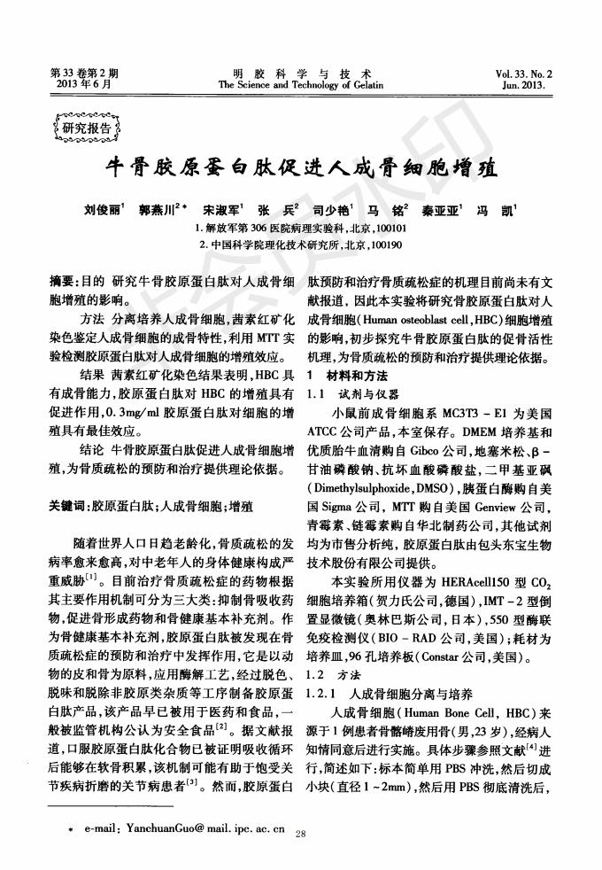 牛骨膠原蛋白肽促進人成骨細胞增殖