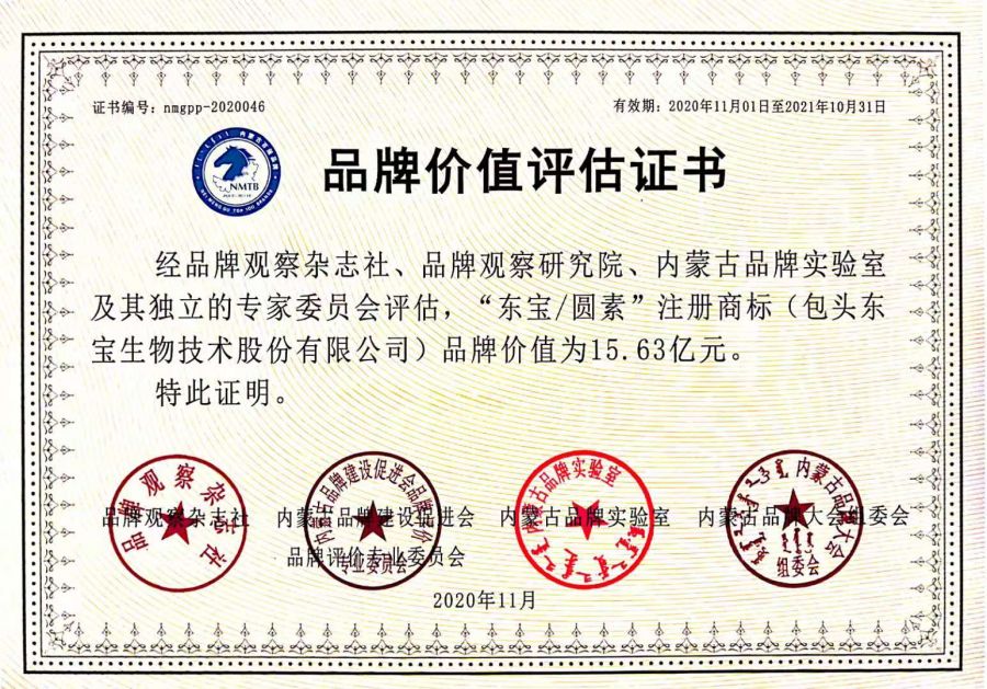 重磅|東寶/圓素品牌價值突破15.63億元!東寶生物再度上榜內蒙古百強品牌