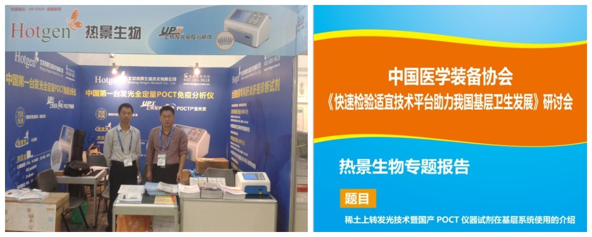 同期,熱景公司參加了中國醫(yī)學裝備協(xié)會—《快速檢驗適宜技術(shù)平臺助力我國基層衛(wèi)生發(fā)展》研討會,總經(jīng)理林長青做了主題為:稀土上轉(zhuǎn)發(fā)光技術(shù)暨國產(chǎn)POCT儀器試劑在基層系統(tǒng)使用的介紹。上轉(zhuǎn)發(fā)光技術(shù)的優(yōu)勢引起業(yè)內(nèi)專家人士的高度認同。