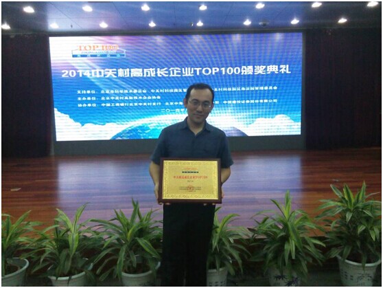 2014年8月8日,在北京市科委、中關(guān)村管委會(huì)、海淀園管委會(huì)及政府主管部門的指導(dǎo)與支持下,由北京中關(guān)村高新技術(shù)企業(yè)協(xié)會(huì)主辦的“2014中關(guān)村高成長企業(yè)TOP100”評選結(jié)果發(fā)布會(huì)暨頒獎(jiǎng)典禮在京隆重舉行。北京熱景生物技術(shù)有限公司憑借較快的增長速度、,以及高素質(zhì)的優(yōu)秀管理團(tuán)隊(duì),在眾多企業(yè)中脫穎而出,榮膺上榜。熱景生物的副總經(jīng)理管寶全同志代表公司出席了頒獎(jiǎng)典禮。