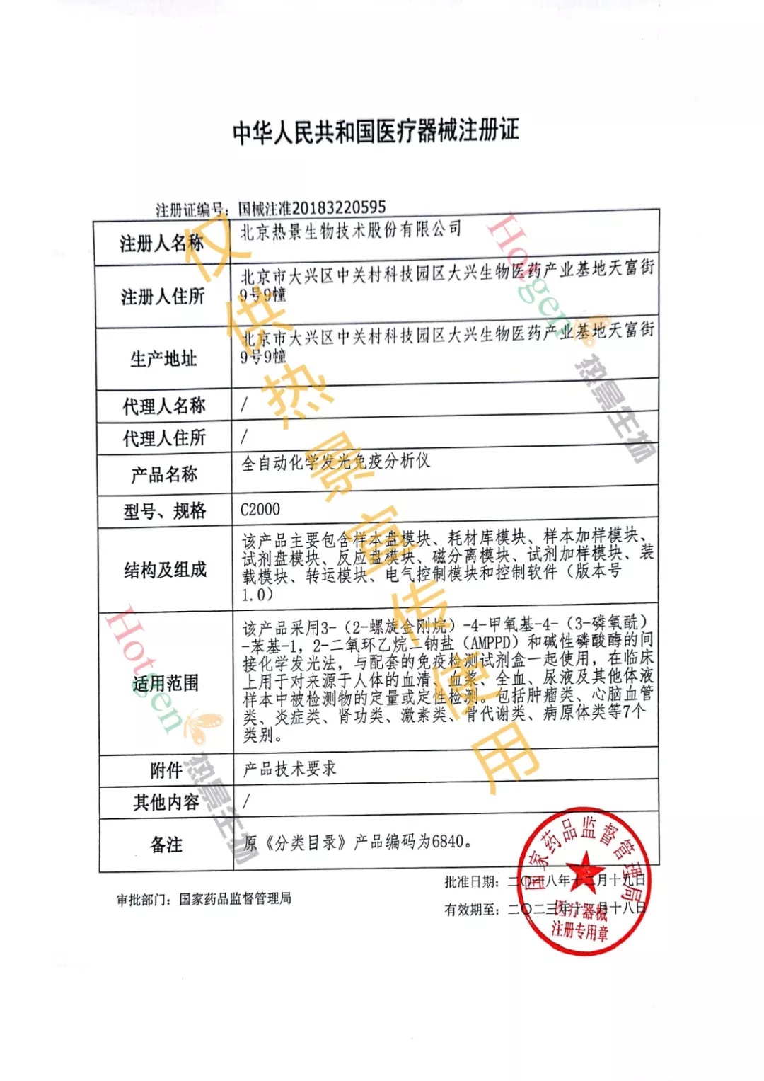 日前,熱景生物重磅新品C2000全自動化學(xué)發(fā)光免疫分析系統(tǒng)獲得國家食品藥品監(jiān)督管理局的批準(zhǔn)文號,國械注準(zhǔn):20183220595,正式上市。熱景生物經(jīng)過長期的研發(fā)和測試,投入了大批的研發(fā)力量,整合大量的行業(yè)資源,借鑒業(yè)界先進(jìn)的檢測平臺,融合超凡的工業(yè)設(shè)計,潛心研發(fā)出極具行業(yè)競爭力的全自動化學(xué)發(fā)光檢測設(shè)備。