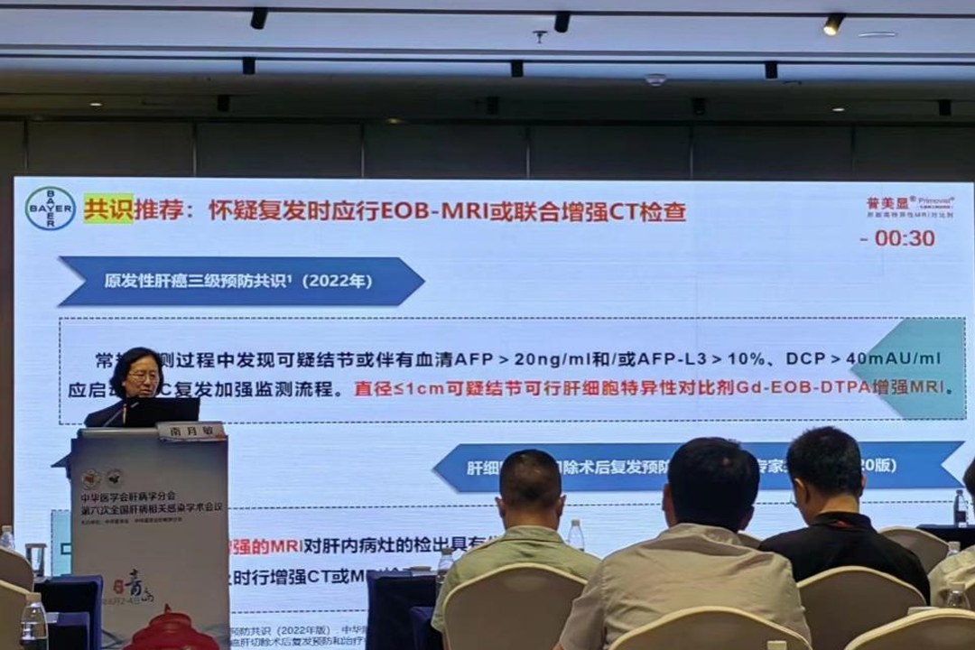 河北醫(yī)科大學(xué)第三醫(yī)院南月敏教授作“積極治療,從新出發(fā)-從新指南看慢乙肝初治患者的優(yōu)化治療策略”學(xué)術(shù)報(bào)告,在講到共識(shí)推薦:懷疑復(fù)發(fā)時(shí)應(yīng)行EOB-MRI或聯(lián)合增強(qiáng)CT檢查時(shí),指出常規(guī)檢測(cè)過程中發(fā)現(xiàn)可疑結(jié)節(jié)或伴有血清AFP>20ng/ml和AFP-L3>10%、DCP>40mAU/ml,應(yīng)啟動(dòng)HCC復(fù)發(fā)加強(qiáng)監(jiān)測(cè)流程。